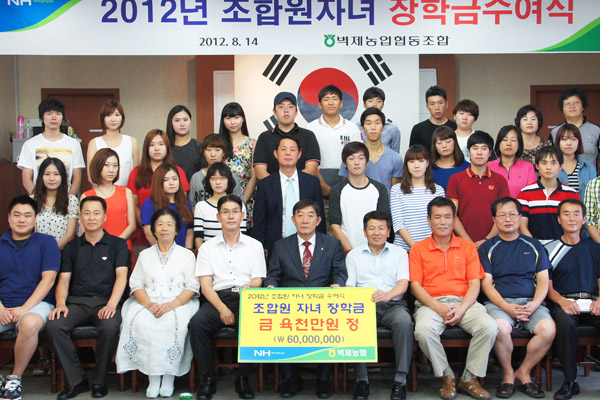 벽제농협(조합장 이승엽)은 14일 농협회관에서 조합원 자녀 60명에게 장학금 6000만원을 전달했다.<사진> 벽제농협 장학생 선발은 전체 조합원의 대학생 자녀를 대상으로 신청을 받아 장학생선발위원회의 심의를 거쳐 졸업학년 학생을 위주로 선발했으며, 1인당 100만원씩 장학금과 교양도서를 전달했다.