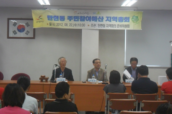 22일 직능단체회원 및 지역주민 약 50여명이 참석한 가운데 주민참여예산 탄현동 지역총회가 열렸다. 이날 지역회의를 주관한 조웅철 탄현동 지역총회 준비위원장은 “주민참여예산제는 예산낭비를 방지하고 재정운용의 효율성을 높이고 지방재정에 주민참여를 실현하는 참여민주주의의 새로운 초석이 될 제도”라며 “초기 시행착오로 인해 어려움도 있지만 주민들 스스로 새로운 방법을 찾아내고 시도할 수 있도록 다양한 방법을 연구할 것”이라고 전했다.