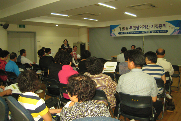 행신3동 주민센터는 22일 오후 4시 3층 다목적회의실에서 주민들이 직접 마을을 위한 사업을 결정하고 예산을 편성하는 행신3동 주민참여예산 지역총회가 열렸다. 이번 총회에는 주민 100여명이 참석한 가운데 행신3동 주민참여예산위원회 위원장에 정창일씨가 선출됐다. 이어 단독주택단지 방범용 CCTV설치와 가라뫼 경로당 설치 등에 대한 우선 순위를 결정하는 투표가 이뤄졌다.