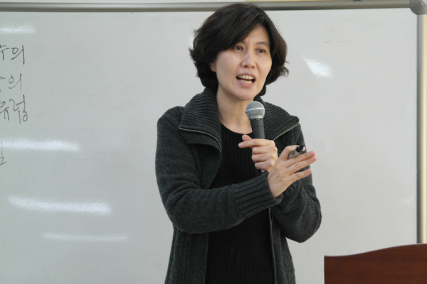 “우리나라는 복지국가인가요?”라는 질문에 선뜻 자신있게 “네”라고 대답하는 이가 없었다. “기본적인 틀은 복지국가라고 생각해요.” 고양파주여성민우회가 마련한 ‘수다로 푸는 생활정치 이야기’ <여성민우학교> 네번째 강의는 ‘복지와 나의 삶은 어떻게 연결될 수 있을까?’였다. 23일 일산서구청에서 ‘복지의 재구성-여성의 이름으로’라는 타이틀로 한국노동연구소 장지연<사진> 선임연구원이 강의했다.