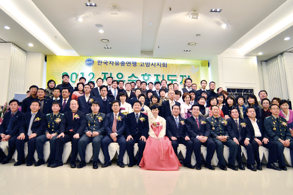 지난 27일 주엽동 소메르뷔페에서 한국자유총연맹 고양시지회에서 주최하는 2012 자유수호지도자 전진대회가 열렸다. 이날 행사에 참석한 자유총연맹 식구들은 한해를 잘 마무리하고 새해에도 연맹사업과 지역사회 봉사활동에 더욱 앞장서겠다는 결의를 다지는 시간을 마련했다. 최성 시장과 김태원 국회의원, 박윤희 시의장, 김완규 시의원, 이길용 시의원, 안선엽 교육장, 권혁진 JC회장 등도 참석해 자리를 빛냈으며 멀리 서귀포시지회에서도 이날 행사를 축하하기 위해 참석했다.