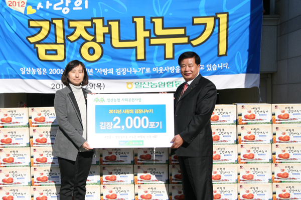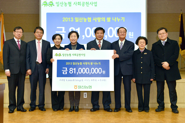 일산농협은 지식경영과 더불어 나눔경영에 매진하고 있다. 일산농협이 매년 지역사회에 기부하는 금액은 1억원 대에 이른다. 어려운 이웃들에게 5000만원 상당의 쌀을 전달하고 지역 복지관에 스타렉스 차량을 기증해 왔다. 일산농협은 수익이 늘어날수록 기부금액도 늘어난다. 시중 은행과는 비교할 수 없는 공익적 가치를 실현하는 기업이다. 기부 이외에 자원봉사에도 열성적이다. ‘고향을 생각하는주부모임’과 ‘실버봉사단’ ‘여성대학봉사단’ ‘임직원봉사단’ ‘수정봉사단’ ‘여성산악위원봉사단’ 등 각 조직은 대부분 자율적인 봉사프로그램을 운영하고 있다. 독거노인 목욕보조와 급식보조, 도시락배달, 일손 돕기 등 다양한 봉사활동을 펼친다. 조합원들과 임직원들은 급여의 일부를 모아 기부하는 자율적인 기부활동에도 적극적이다. 일산지역의 복지시설과 차상위계층은 일산농협이라는 지역기업의 든든한 후원을 늘 고마워하고 있다.