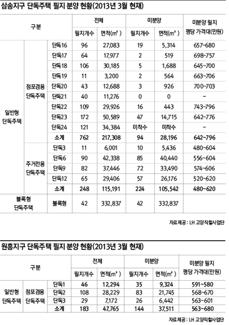 임진수 LH 고양직할사업단 판매부장은 “점포겸용 단독주택필지에는 상가를 지을 수 있고 세대수가 많으니까 전세, 월세로 임대할 수 있어 수익성이 있다”며 “주거전용필지에 대한 수요가 떨어지는 이유는 서울을 포함한 수도권 전체의 부동산 경기가 침체한데다 김포나 파주 등 택지개발지구가 산재해 있다보니 주택 공급과잉에 의한 여파가 삼송지구나 원흥지구에도 미쳤다”고 말했다.