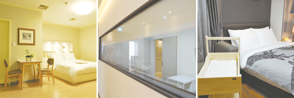 산모와 남편이 함께 사용하게 되는 룸에는 대형LED TV, 테블릿PC, 공기청정기, 유축기, 일체형 비데, 고급 목욕용품, 프리미엄 생수 등이 마련되어 있고 VIP룸에는 전용 베이비침대와 남편을 위해 간단한 업무를 볼 수 있는 노트북이 세팅된 데스크도 준비되어 있다. 그리고 남편의 아침식사를 대신할 수 있는 토스트와 음료가 제공되고 있다.
