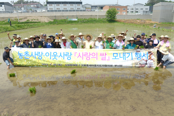 이른 아침부터 모내기를 위해 고봉동 새마을지도자협의회원과 부녀회원들은 논과 들에서 분주하게 움직이며 음식을 준비하고 사랑의 쌀로 성장할 모를 날랐다. 특히 이날은 남상호 소방방재청장을 비롯해 방재청 직원 40여명도 고봉동 사랑의 쌀 모내기에 동참했고 지역주민들과 일일이 작은 것부터 큰일까지 서로가 도움을 주고 챙겨가며 처음 만남이지만 새로운 만남의 공동체로서의 협동하는 면모를 보였다.