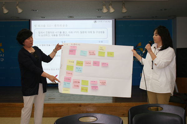 지난달 30일 고양시민회가 주최하는 사회적경제 아카데미 실무 워크샵에서 한울타리 팀은 어느 팀보다 진지했다. 도시락 사업을 주 아이템을 결정한 한울타리 회원들은 이날 ‘왜 협동조합을 하려고 하는지’ ‘협동조합을 통해 무엇을 얻을 수 있는지’ 등을 적어보고 팀의 욕구를 파악하는 시간을 가졌다. 회원들은 일자리 창출, 경제적 이익, 사회참여, 사람답게 살 수 있는 경제적 여건, 새로운 공동체 구성 등을 협동조합 결성의 주요 이유로 설명했다.