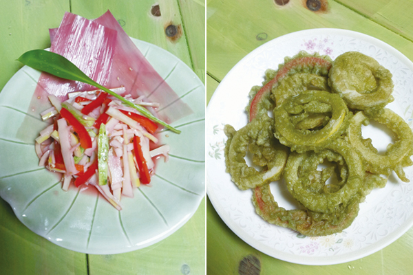 tip : 죽순을 비트, 오미자, 치자물에 담갔다가 튀김옷을 입혀 튀겨내면 색색의 죽순튀김이 된다.