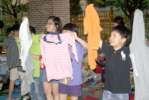 행사를 준비한 한병익 교사는 “그냥 아이들에게 나눔행사를 열자고 하면 막연해 할 것 같아서 영상시청을 통해 목적의식을 심어주고자 한 것”이라며 “아이들의 반응이 좋다보니 학부모들도 덩달아 참여했다”고 기뻐했다. 교사들 또한 행사를 교실 대신 넓은 주차장에서 열기 위해 이날 하루는 차를 끌고 오지 않았다고. 덕분에 상탄초 나눔바자회는 비가 쏟아지는 가운데서도 왁자지껄 활기찬 분위기로 오전 내내 진행됐다.