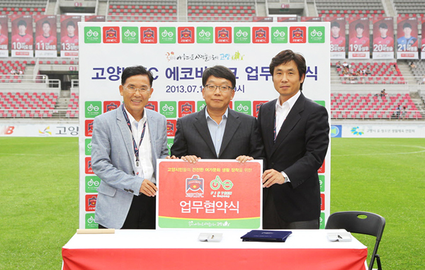 고양 Hi FC가 고양시 친환경 임대자전거 ‘피프틴’ 업체인 ㈜에코바이크와 업무협약을 체결했다. 지난 7월 13일(토) 고양종합운동장에서 열린 K리그 챌린지 17라운드 홈경기에 앞서 고양 Hi FC는 에코바이크(대표이사 양성수)와 함께 협약식을 진행했다.