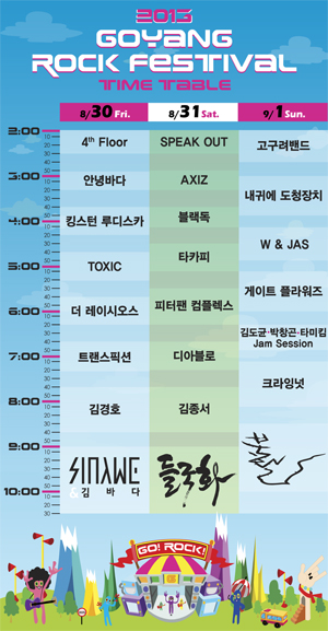 고양 락페스티벌은 8월 30일부터 9월 1일까지 3일간 고양시 원마운트 옆 광장에서 열린다.