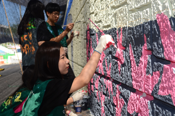 이틀동안 햇빛을 가리는 차양막을 드리운 작업장에서 색채 작업을 맡은 ‘담쟁이’ 소속 학생 은 모두 70여명. 이들은 작업장 한편에 놓인 물감통과 맡은 벽면을 분주히 오가며 색채작업에 열중하는 모습을 보였다. 무더위에도 불구하고 구슬땀을 흘리며 스케치부터 채색까지 마무리작업을 한 학생들은 공동체일자리사업 근로자들 및 일산1동 주민자치위원들과 함께 도와서 벽화사업을 완성시키는 데 일조했다. 무표정하던 벽면이 ‘북한산 밥할머니 이야기’, ‘주엽동 아기 장수 이야기’ 등 고양에서 내려오는 설화를 모티브로 한 그림으로 채워지자 골목길은 생동감을 띠게 됐다.