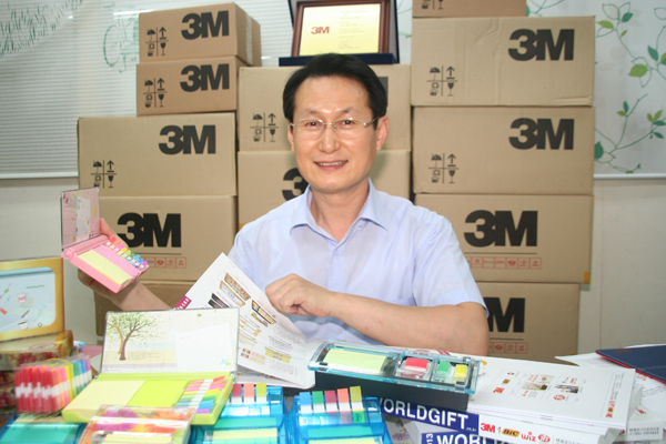 3M본사에서도 흐뭇해하는 ‘디스펜서’는 포스트잇의 다양한 색상들이 예쁜 디자인의 고급스런 케이스에 담겨 있어서 판촉용으로 으뜸이다. 황 대표이사의 활발한 사업에는 봉사의 시너지 효과도 있지만 관리이사인 아내 천정희씨의 내조가 큰 몫을 했다. 황 대표이사가 대학 1학년 때 만나 9년 만에 결혼을 한 지금의 아내는 작년에 중풍, 암 등으로 작고한 부친의 병수발에 정성을 쏟았다. 뿐만 아니라 황 대표이사의 남동생을 결혼시켰고, 75세인 모친과 함께 살면서 극진히 모시고 있다. “남편으로서 살아있는 부처 같은 아내에게 효부비를 세워주고 싶다”고 황 대표이사는 아내에 대한 고마움을 나타냈다.