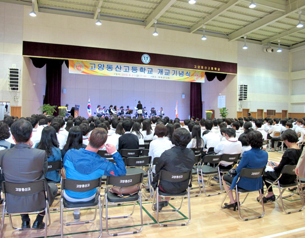 삼송지구 동산마을 동산동 265-1번지에 위치한 고양동산고등학교(교장 이종희) 개교기념식이 지난 27일 개최됐다. 모든 학생들과 내빈들이 참석한 가운데 고양국제고등학교 학생들이 기념식장을 찾아 식전 축하 공연을 펼쳤다.