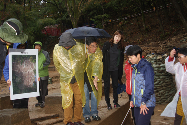 이 중 고양시가 유네스코 등재를 준비하고 있는 북한산성 행궁이 작년 10월부터 진행했던 1차 발굴조사를 통해 마침내 모습을 드러냈다. 일제강점기였던 1915년 당시 산사태로 파묻힌 이후 100년 만에 원형발굴이 이뤄진 것이다. 15일 비가 내리는 가운데 발굴지에서 진행된 현장설명회에는 문화재 관계자와 학계, 언론 등이 대거 참석해 큰 관심을 나타냈다.