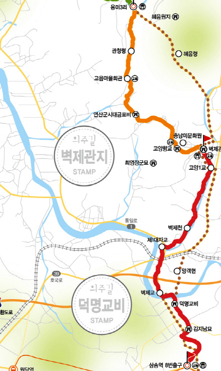 또한 의주대로가 차도의 형태로 상당부분 보존돼 있는 점을 십분 활용해, 차량으로 의주길의 원래 노선을 답사할 수 있도록 안내지도에 차량용 답사노선도 함께 표기했다.