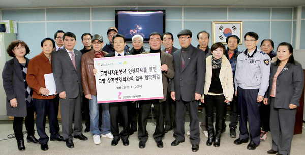 또한 업무협약에 관해 적극적인 입장을 표한 고양상가번영회의 신효근 회장은 “이미 30여개 점포에서 가맹을 약속했으며 앞으로 계속 추가될 예정”이라고 말하며 “상가는 봉사자들에게 할인 해택을 줌으로써 나눔을 실천하고, 봉사자들은 할인이 적용되는 카드를 사용함으로써 지역경제 활성화에 기여하게 될 것”이라고 기대했다. 또한 고양상가번영회는 “지역의 초·중·고등학교에 소정의 장학금을 제공하고 있고 독거어르신과 장애인 단체에 이미 나눔을 실천하고 있으며 앞으로 더 많은 자원봉사를 준비하고 있다”고 덧붙였다. 한편 이날 업무협약 체결식에는 우영택 시의원, 조수환 고양동장 외에 고양동 경로당 회장단과 각 직능단체 회원 등이 대거 참석해 주민들의 높은 관심을 엿 볼 수 있었다.