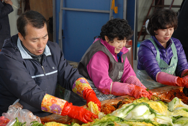 김장을 했던 18일과 19일은 바짝 추위가 찾아온 날이었다. 드넓은 송포들녁으로 불어오는 찬바람을 맞으며 위원들은 배추 및 무를 밭에서 뽑아 다듬고 절였다. 양념을 버무리는 날은 더욱더 추웠다. 버무린 김치를 포장하기까지 송포동 주민자치위원들과 주민들이 참여해 단합된 이웃사랑을 실천했다.