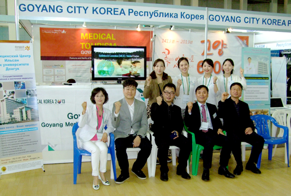 고양시는 2012년 러시아 이르쿠추크주와 의료관광 협력을 위한 MOU를 체결했다. 이어 민·관 의료관광마케팅 추진단이 구성된 2013년 5월에는 러시아 블라디보스톡 태평양 국제관광 박람회<사진>에 참가해 3일간의 방문기간 동안 195건의 환자상담과 함께 현지 전문협력기관 및 병원과의 35건의 협약을 체결했다. 지난 9월에는 몽골 보건부와의 간강 및 의료분야 업무체결식도 가졌다.