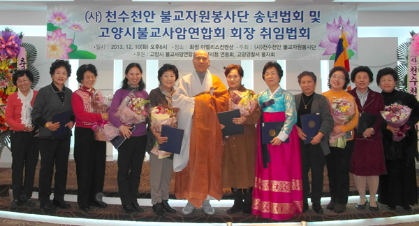 (사)천수천안 불교자원봉사단은 지난 10일 오후 6시 덕양구 화정동 아벨리스 컨벤션에서 천수천안 이사장스님을 비롯한 이사스님과 사암연합회 스님 및 자원봉사자 350여명이 참석한 가운데 송년법회를 개최했다.
