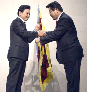 고양상공회의소 제2·3대 회장 이·취임식 및 신년인사회가 지난 8일 엠블호텔 킨텍스에서 개최됐다. 이날 제2대 회장이었던 우신구 회장은 이임했고, 제3대 회장으로 고문중 신임회장이 취임했다.