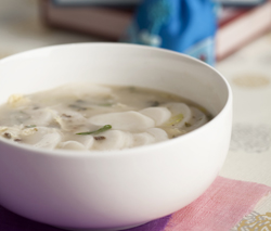 재료 : 굴 200g, 떡국 떡 400g, 멸치육수 10컵, 대파 1/2대