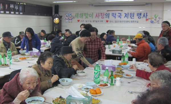 일산서구 일산1동 새마을부녀회(회장 이녀자)는 2014년 갑오년 새해를 맞아 지난 15일 일산1동 주민센터 대회의실에서 ‘사랑의 떡국나눔’ 행사를 실시했다.