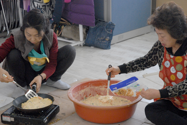 능곡동 지역주민들로 조직된 ‘우리 동네 공작소’회원들과 부녀회장 등은 아침부터 커다란 함지박 가득히 전을 붙일 반죽을 마련했다. 몇 시간 걸려서 꼬지산적과 동태전, 동그랑땡을 붙였고 잡채도 만들었다. 준비된 음식은 정갈하게 포장해서 이날 바로 각 가정에 전달했다. 강경희 회원은 “많지는 않지만 이렇게 명절음식을 준비해서 드릴 수 있게 되어 마음이 좋다”고 말했다.