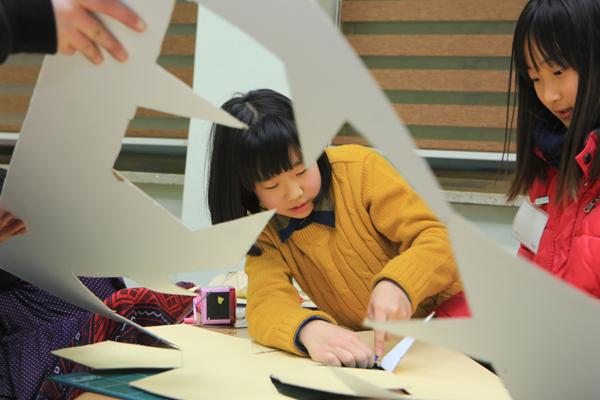 3명이 한조를 이루어 자와 컴퍼스, 각도기를 이용해 전개도를 그리고 다면체를 완성해보는 과정에서 아이들은 자연스럽게 협동을 이루고 열띤 토론을 벌였다. 또 완성된 다면체 안에 구슬을 넣어 과학적 추리로 다면체 속 구슬의 개수를 추정해보는 과정은 아이들의 흥미를 유발했다. 수업이 끝난 후에도 다면체를 완성하지 못한 아이들은 학습관에 남아 과제를 하는 등 수업참여도가 뜨거웠다.
