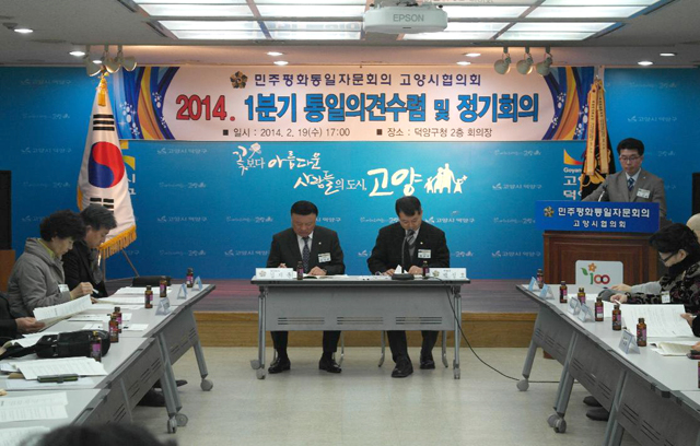 민주평화통일자문회의 고양시협의회(회장 김지훈)는 지난 19일 덕양구청 2층 회의실에서 고양시 자문위원 100여명이 참석한 가운데 ‘2014년도 1분기 통일의견수렴 및 정기회의’를 개최했다.