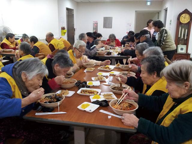 고양은혜마을 어르신들은 음식을 먹으며 “짬뽕과 짜장 중 하나만 선택해야 하는지, 아니면 둘 다 먹어도 되는지”라며 조심스럽게 질문하자, 회원들은 “당연히 다 됩니다. 탕수육과 군만두도 공짜로 대접해 드립니다”라고 성심성의껏 대접했다. 또한 은혜마을 시설장, 원장 이하 직원들도 어르신들과 함께 식사를 하며 행복한 시간을 보냈다.