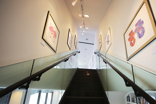 풍동 애니골에 있는 화덕구이전문점 ‘산에산’의 매장 면적은 826㎡(250평). 여느 고깃집이라면 270~280석이 들어설 만한 공간이지만 이곳은 200석에 불과하다. 산에산의 박성한 대표는 손님 테이블을 줄이면서 생긴 여유 공간에 갤러리를 만들었다. 매장의 앞뒤 입구 각각의 벽면과 복도 양쪽 벽면에 그림을 걸었다. 뒤쪽 출입문에서 중앙홀로 이어지는 공간은 아예 비워뒀다. 손님들이 서서 그림을 감상할 수 있도록 배려한 것이다. 산에산 자리는 애니골의 진원지인 화사랑의 터. 1980~90년대 청춘 문화의 한 축이었던 애니골 문화를 다시 한 번 추억하는 공간이 됐으면 하는 박 대표의 바람이 담긴 갤러리다.