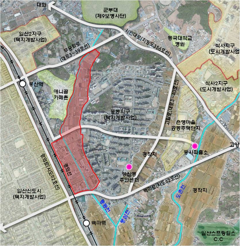 국토부가 손을 뗀 풍동지구(지난 고양신문 기사에서는 풍동2지구로 명명)가 민간에 의한 도시개발이 추진되고 있는 가운데, 세부적인 도시개발안을 놓고 현재 고양시와 도시개발조합추진위 간에 조율을 하고 있는 것으로 나타났다.