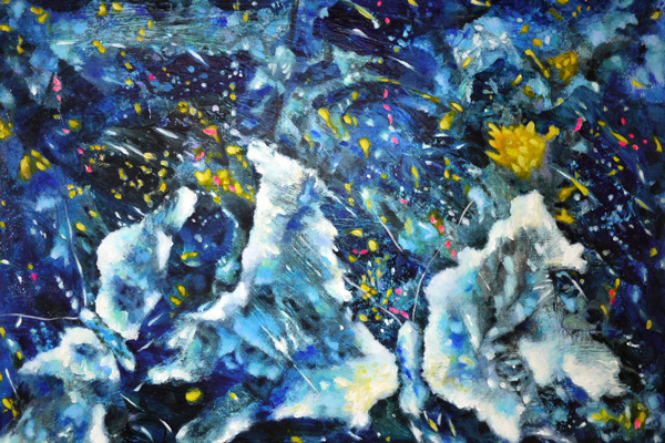 김선경씨는 프랑스 유학을 마치고 귀국해 선보인 첫 개인전(1984년)부터 줄곧 화단의 주목을 받아온 중견작가다. 추상에서 출발한 그의 작품은 1990년대 후반 밴쿠버로 삶의 터전을 옮기면서 구상으로 돌아섰다. 추상 작업을 백안시하는 일부 시선에 대한 반감으로 시작한 구상 작업에 그는 7년 넘게 천착했다. 그러나 작업의 뿌리인 추상을 완전히 버리진 않았다. 꽃에서 나비 시리즈로 이어지는 지금의 작품은 반추상에 가깝다. 추상에서 구상으로, 다시 추상으로 회귀하면서 온전히 ‘그의 것’이 된 화폭은 화려하고 생동감이 넘친다. ‘작가에게 작업은 일상’이라고 믿는 그는 10여 년만의 국내 전시를 앞두고 설레면서도 두렵다고 했다. 자신의 변화된 작품 세계를 국내서 어떻게 봐줄지 기대도 했다. 이번 전시에서는 꽃, 나비, 별 등을 소재로 한 22점을 선보인다. 지난 10여 년간의 작업 족적을 보여주는 작품들이다.