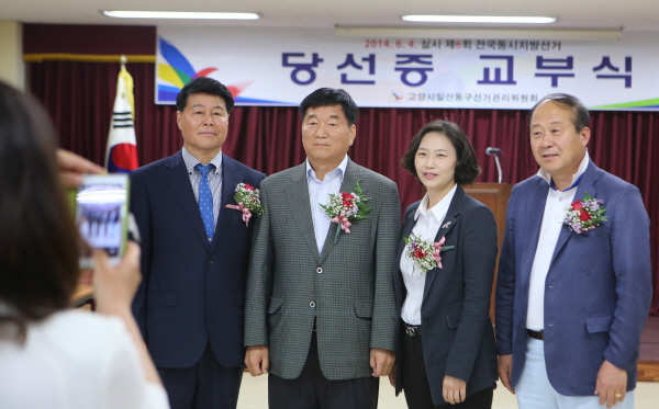 왼쪽부터 새누리당 고오환 도의원 당선자, 이영휘, 김미현, 김영식 시의원 당선자. 이성오 기자 rainer4u@mygoyang.com 다른기사 보기 저작권자 © 고양신문 무단전재 및 재배포 금지 당신만 안 본 뉴스 "사라진 720억, 누가 책임지나" 목암조합, 시행사·고양시 상대 손배소 “택시 부족한데 감차? 동의 못한다” "이동환 시장, 올해도 규정 안 지키고 즉흥적 해외출장” 원생에 종교 강요, 식자재는 교회로... 시립어린이집 원장 논란 변경·변경·변경… 고양시 경자구역 ‘갈팡질팡’ 언제까지 “고양시 공공건설 68% 외지업체가 잠식” "인천2호선·고양은평선, 타당성에만 매몰되면 안돼" "사라진 720억, 누가 책임지나" 목암조합, 시행사·고양시 상대 손배소 라이브리 댓글 작성을 위해 JavaScript를 활성화 해주세요 주요기사 고양로타리클럽 40년, 도약의 100년 담은 감동선율 사과나무의료재단, 25년 지역사회공헌 인정제 A+ 획득 사과나무치과, 일산사랑센터와 MOU “3대 성인병과 치매, 일상의 음식으로 치유해요” 주민들이 준비한 내유1동 ‘마을안녕 산고사’ 지내던 날 일산노인종합복지관, ‘효(孝)저금통’ 모금 진행