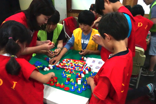 이날 아이들을 위해 센터를 찾은 정학범 조직커뮤니케이션연구소 소장은 아이들의 눈높이에 맞춰 블록 자동차 만들기를 준비했다. 정학범 소장은 “기업에서 강의할 때 쓰는 몇몇 어려운 단계는 제외해서 아이들이 즐길 수 있게 프로그램을 고안했다”고 말했다. 아이들과 연수생들은 6조로 나뉘어 각 조 7명씩 팀장, 부팀장, 행동대장, 조립, 설계, 검사원으로 역할 분담하여 조직구조를 간단하게 배웠다.