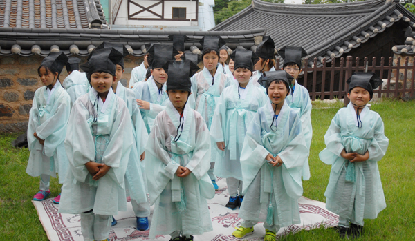 이미 행주산성 답사를 다녀왔으니 아이들은 충분히 덥다. 하지만 서원에서 선비체험을 하기 위해 종아리에 행전을 매고, 머리에 유건을 쓰고 도포를 입는 아이들은 새로운 경험을 하는데 온 정신을 빼앗겨 더운 줄을 모른다.