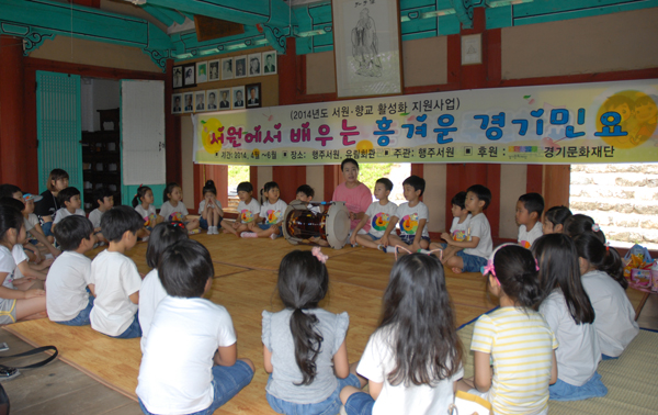 행주서원에서 주관하고 경기문화재단이 후원하는 이 특강은 6월부터 시작되어 지난 17일 수료식을 갖게 됐다. 아이들을 지도한 신월숙 경기소리 명창은 “시루떡, 이박저박 곤지박, 통영게타령, 등 8~9곡 정도의 민요와 전래동요를 가르쳤는데 아이들이 진짜 재미있어 하면서 너무 잘 따라했다”고 말했다.