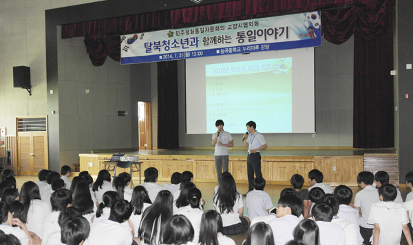 민주평화통일자문회(민주평통)의 고양시협의회(회장 김지훈)는 지난 21일 능곡중학교 3학년 300명을 대상으로 ‘탈북청소년과 함께하는 통일이야기’<사진>를 실시했다.