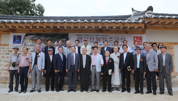 2010년 경기도 지정문화재 제157호로 지정된 영사정은 작년 10월 복원공사에 착수해 올 8월 공사를 완료했고 지난 2일 준공식을 가졌다. 영사정은 고양시에서 가장 오래된 건축물로 20여 년 전부터 문화재 지정과 복원에 대한 청원이 문중과 지역 원로들로부터 있어왔는데 이제야 결실을 보게 됐다.