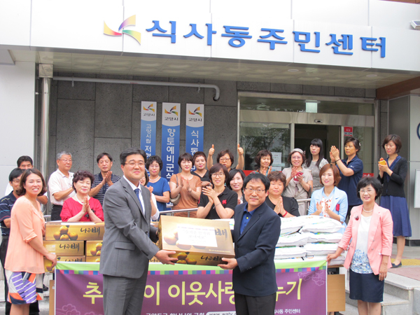 일산 하나님의 교회 세계복음 선교협회는 추석을 맞이해 지난 1일 식사동사무소를 방문해 불우한 이웃을 돕기 위하여 쌀 20kg 15포대와 배 15 박스를 전달했다. 이어 3일과 4일에는 중산동사무소와 일산2동사무소에 이불 50채를 전달했다.