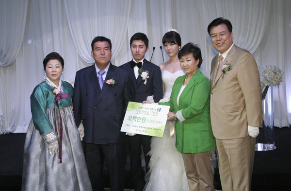 이날 가족은 (사)한국 장애인부모회 고양시지부에 사랑의 성금을, 성사고등학교에는 장학금을 전했다. 또한 10월 31일에는 고양학사 라이온스클럽에서 주관하는 학교폭력예방 힐링음악회에서도 장학금을 전달하게 될 예정이며, 이번 결혼식에서 총 1천만원을 기부하게 된다.
