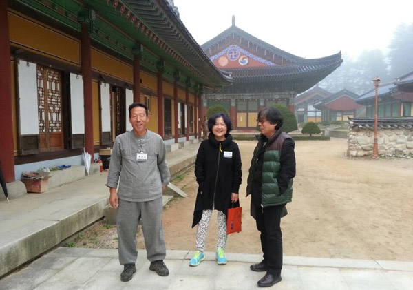 “월정사 아침 안개 속에 고양파 3인 짝다리 짚다.” 고양환경운동연합 조정 공동의장이 환경운동연합 전국 임원워크샵에 참여해 기념 촬영 찰칵. 황유성 집행위원장, 유시훈 감사가 함께 했다.