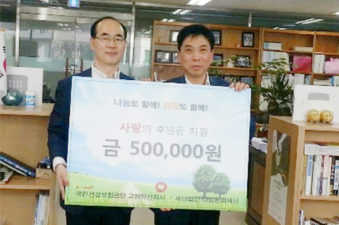 한편, 건강보험공단 고양일산지사는 직원들 대부분이 매월 급여의 일정 금액을 건강나눔기금으로 공제해 공단의 사회공헌활동에 동참하고 있다.