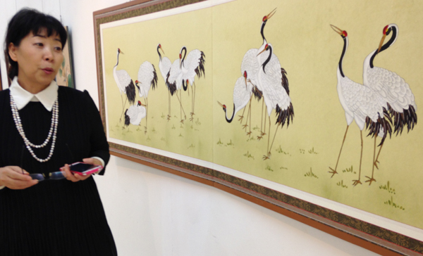 고양민화협회 김정호 회장이 전시회 민화들을 소개하고 있다.