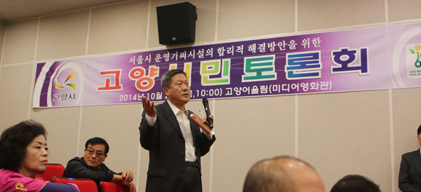 “오늘 이 자리는 내가 청문회를 받는 것같다. 벽제 묘지, 화장장 때문에 방금 김갑성 교수도 이야기했지만 1조4000억원의 피해가 있다. 우리는 2001년부터 기피시설 대책위를 만들어 운영해왔다. 그 결과로 합의서를 썼다. 서울시립 승화원이 생활 필수시설임을 인정하고, 우리가 갑이고 서울이 을 자격으로 합의서 쓴 것이다. 우리가 서울시에 화장장을 뜯어가라 하니 필수시설로 인정하는 대신 부대시설 운영 주체는 고양 원신 주민으로 하고, 운영주체는 주민 대표로 구성된 주식회사로 못을 박았다.”