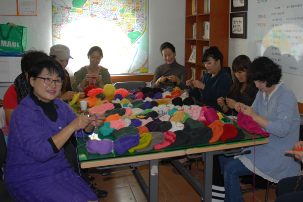 김양희 행신1동 주민자치위원회 간사는 “항공료도 강사님께서 자비로 부담한다”며 “자비들여 봉사하는 행신동 주부님들과 강사님께 감사하다”고 말했다. 둥근 테이블에 둘러앉아 뜨개질을 하는 주부들의 모습이 참 보기 좋다.
