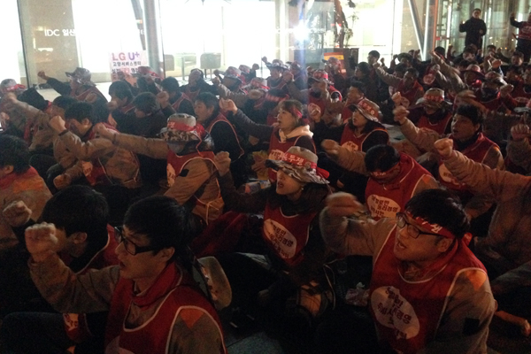 저임금 고노동에 시달리던 SK브로드밴드 협력업체 비정규직 노동자들이 한자리에 모였다. 지난 5일 일산경찰서 앞 SK브로드밴드 서부센터에서 열린 ‘SK브로드밴드 비정규직 고양동서부지회 SK규탄연대집회’에는 추운 날씨에도 불구하고 100여명의 조합원들이 참석해 목소리를 높였다. 특히 이날 자리에는 정의당, 통합진보당, 노동당 관계자 뿐만 아니라 킨텍스 비정규직 노조, LG유플러스 비정규직 노조 등 지역 노동계에서도 참석해 SK측의 성실한 교섭이행을 촉구했다.