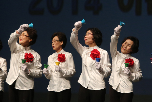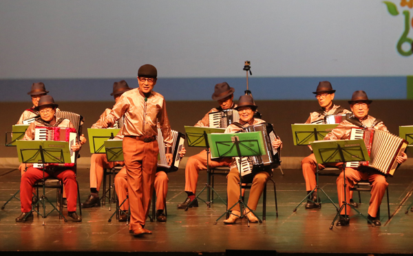 백석초등학교 방송댄스반의 신나는 무대. 화려한 복고풍 의상에 춤실력도 만만치 않다. 지난 20일 어울림대극장에서 열린 고양시 노인일자리사업 평가회에서 백석초 학생들이 자신들의 춤실력을 어르신들께 자랑했다. 열심히 춤을 추는 아이들이 귀엽기만 하다. (백석초 방송댄스반) 어르신들 무대도 만만치 않다. '고양실버인력뱅크 꽃노인 핸드벨 봉사단'의 공연 모습. 가슴에 커다란 꽃을 달고 핸드벨을 살랑살랑 흔든다. 관객에게 미소도 보이며 훌륭한 무대매너까지 갖췄다. . 대한노인회 덕양구지회 실버 아코디언 연주단. 어려운 노래도 척척. 실력이 보통이 아니다. 이날 노인일자리사업 통합평가회에서는 1500여 명의 어르신들이 어울림대극장을 찾아 공연을 즐기고 1년간의 사업을 돌아보는 시간을 가졌다.