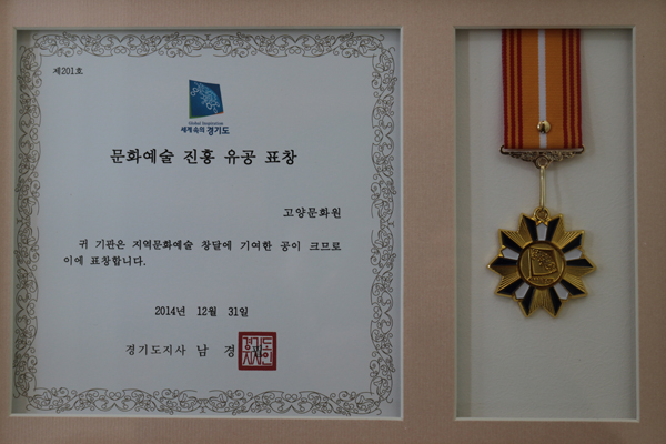 고양문화원이 문화예술 진흥과 발전을 위한 노력을 인정받아 2014년 문화예술 유공단체 경기도지사 표창을 수상했다. 2014년 고양문화원은 상여회다지소리의 경기도 무형문화 지정을 위한 발굴 활동과 일본군 위안부 피해자에 대한 진혼제와 다문화가정을 위한 합동 전통혼례 등을 진행해 지역민들의 큰 호응을 받았다. 또한 국인관광객을 위한 전통문화 체험과 전통문화상설공연과 전통문화강좌 등을 통한 전통문화 살리기, 인형극단과 동화구연단을 통한 내 고장 역사 바로 알리기, 민속놀이 보존 육성을 위한 지속적인 노력 등 대한민국과 고양시의 전통문화 보존 육성을 위한 노력을 계속했고, 그 결과 경기도의 문화예술 유공단체로서 값진 수상을 하게 되었다. 방규동 문화원장은 “모두가 전통문화를 사랑하시는 고양시민과 문화원 회원님들의 성원에 힘입은 결과이기에 감사드리며, 2015년에도 끊임없는 관심과 성원을 부탁드린다”고 수상소감을 말했다.