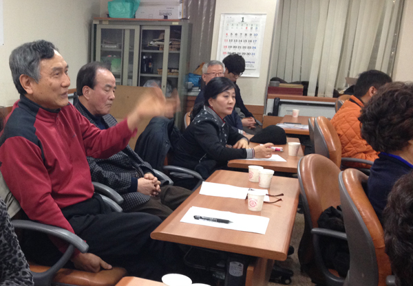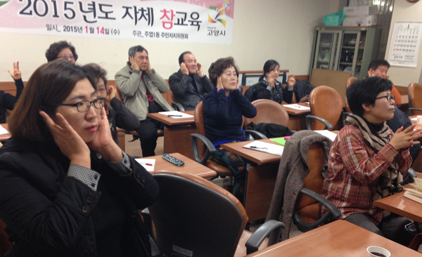 14일 주엽1동 주민자치위원회 회의실에는 주민자치위원 20여명이 모였다. 이의봉 동장, 윤양순 고양시 주민자치과장, 한상우 한양대 공공정책대학원 교수도 함께 했다. 새해 사업을 준비하는 ‘참교육 워크샵’.